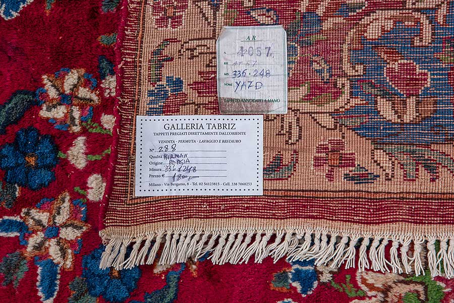 Con la sua ampia misura di 336x248 cm, si distingue per eleganza, valore artigianale e durevolezza, perfetto come pezzo unico selezionato da Galleria Tabriz, via Bergamo 8 Milano.