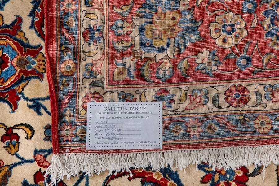 Tappeto Qum 203 vecchia manifattura origine Persia, in vendita presso Galleria Tabriz in via Bergamo 8 a Milano.